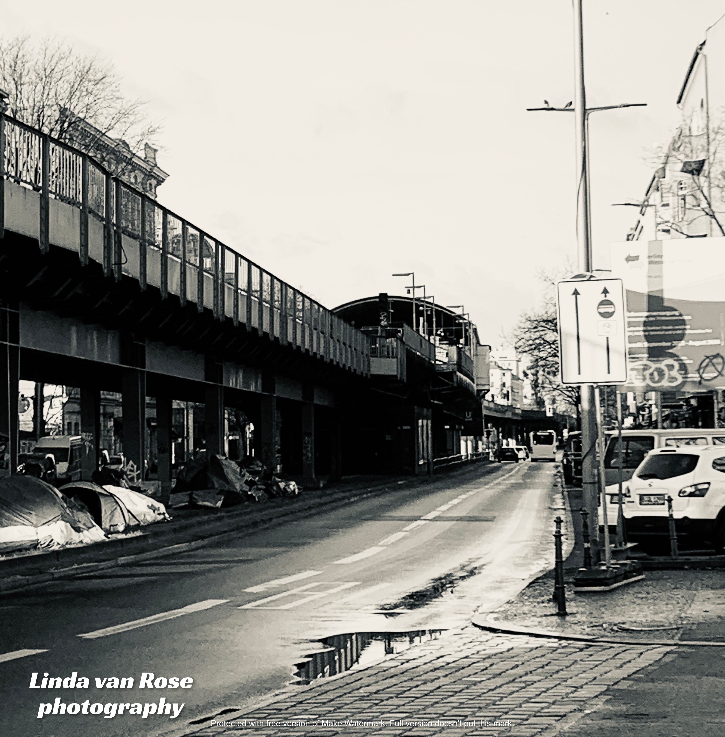 Skalitzer Straße Kreuzberg Berlin Road street Transportation Architecture black and white urban area City monochrome built structure mode of transportation infrastructure Transport building exterior
